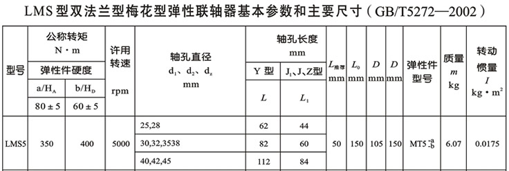 LMS型雙法蘭型梅花形彈性聯(lián)軸器